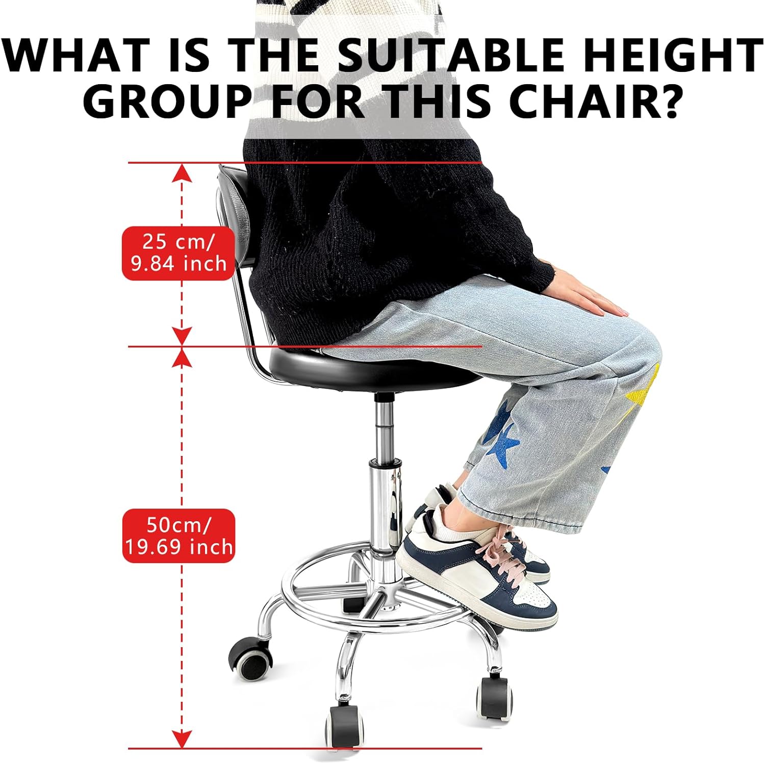 Chair with Wheels PU Leather, with Backrest, Height Adjustable, 360° Swivelling Armless Barstool with Footrest, Ideal for Pubs, Restaurants, Offices, Homes, Tattoos, Massages (Black)