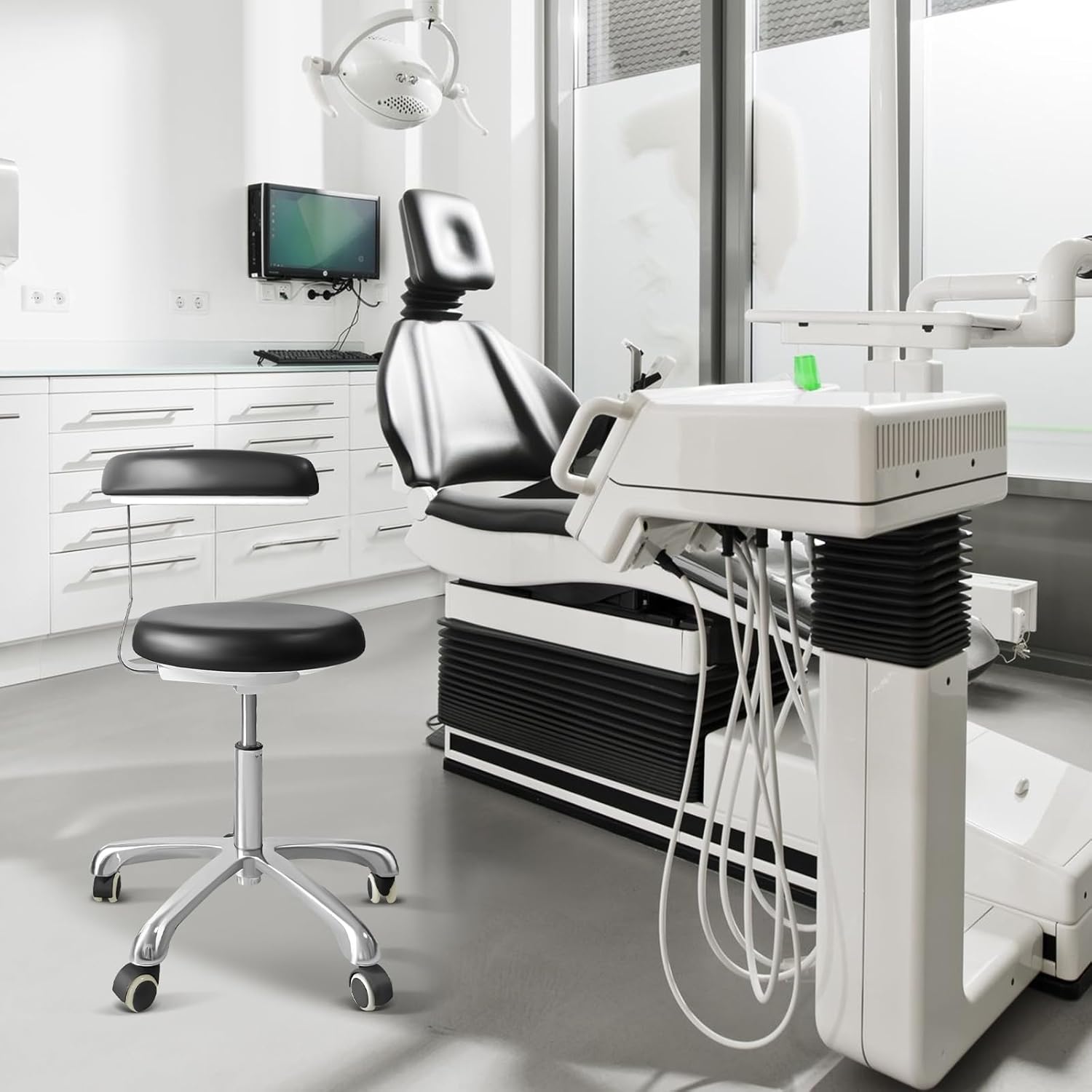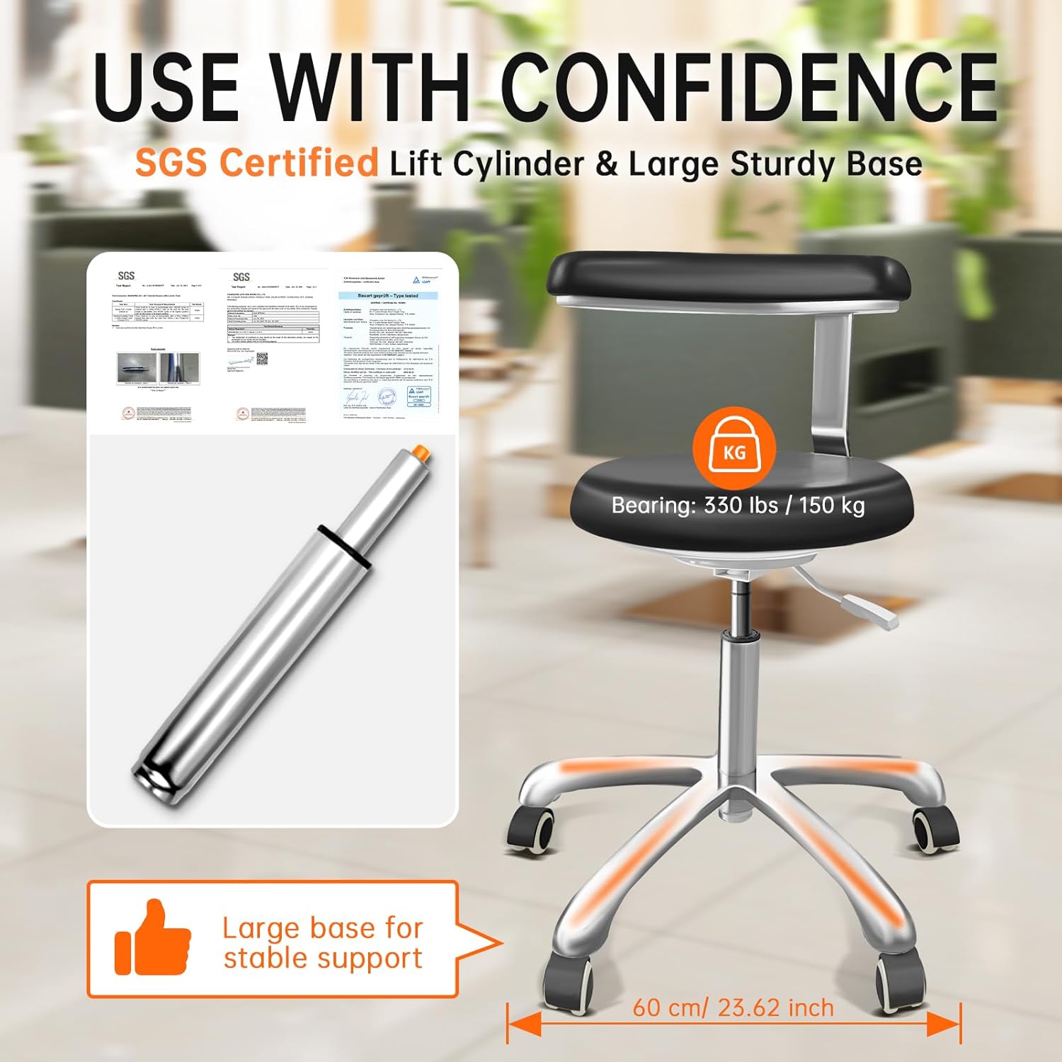 Medical Stool on Wheels with 360 Degree Swivel Armrests, Height Adjustable PU Leather Stool, Salon, Shop, Home and Dental Assistant Chair, Black
